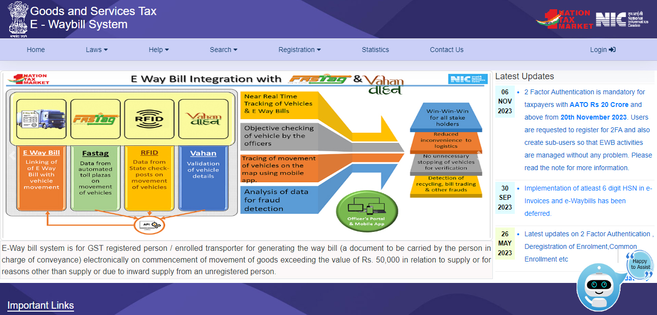 The GST, E-Way bill System has issued an Update dated November 06, 2023 regarding the 2 Factor Authentication is mandatory for taxpayers with AATO Rs 20 Crore and above from November 20, 2023.