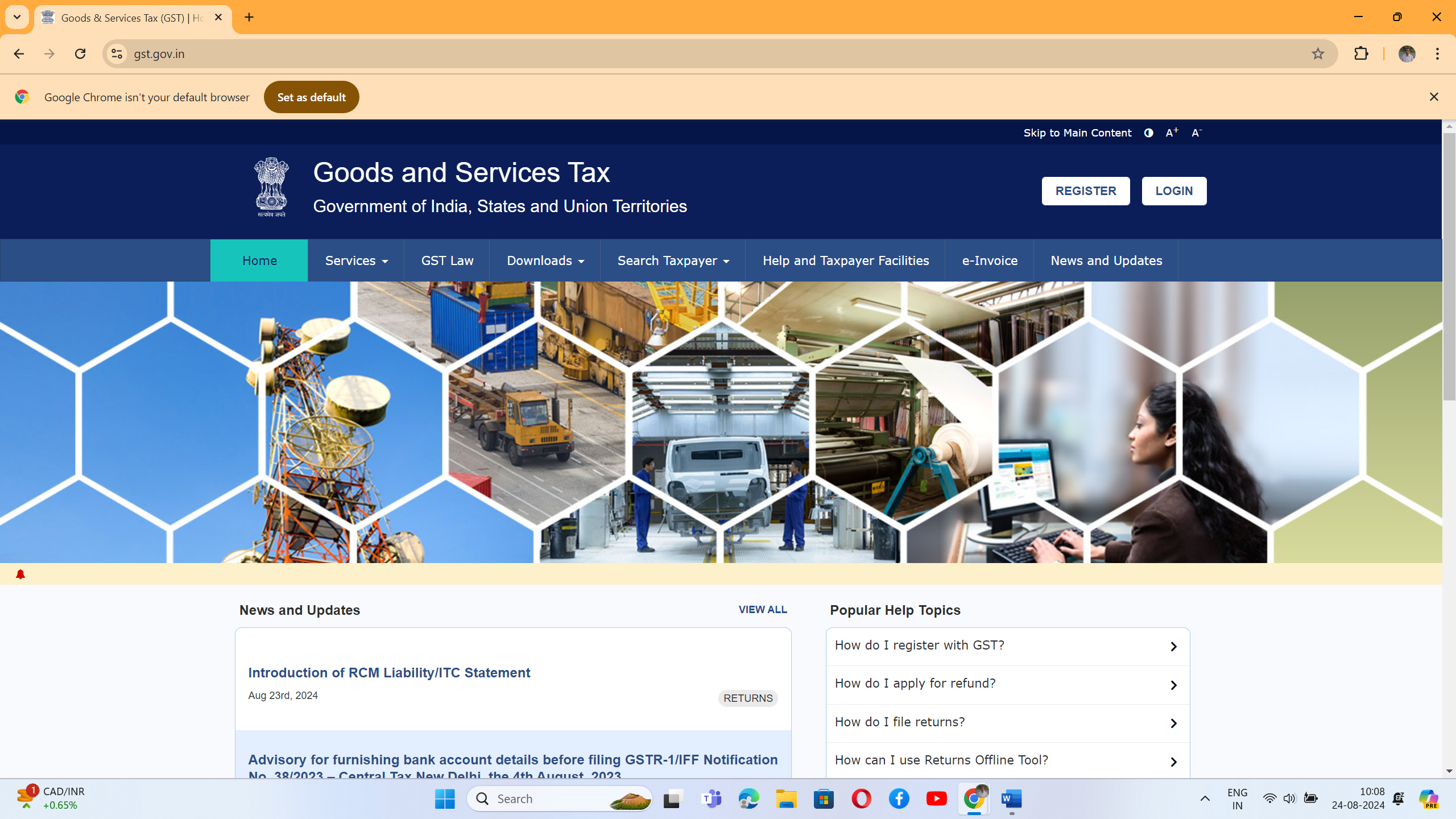 5. It is informed that in absence of a valid bank account details in GST registration, you will not be able to file GSTR-1 or IFF as the case may, be from August-2024 return period.