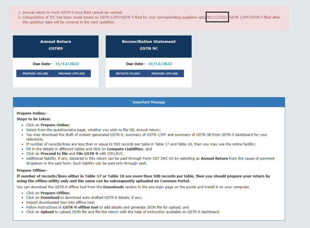 - Computation of ITC has been made based on GSTR-1/IFF/GSTR-5 filed by your corresponding suppliers upto November 30, 2022. GSTR-1/IFF/GSTR-5 filed after the updation date will be covered in the next updation.