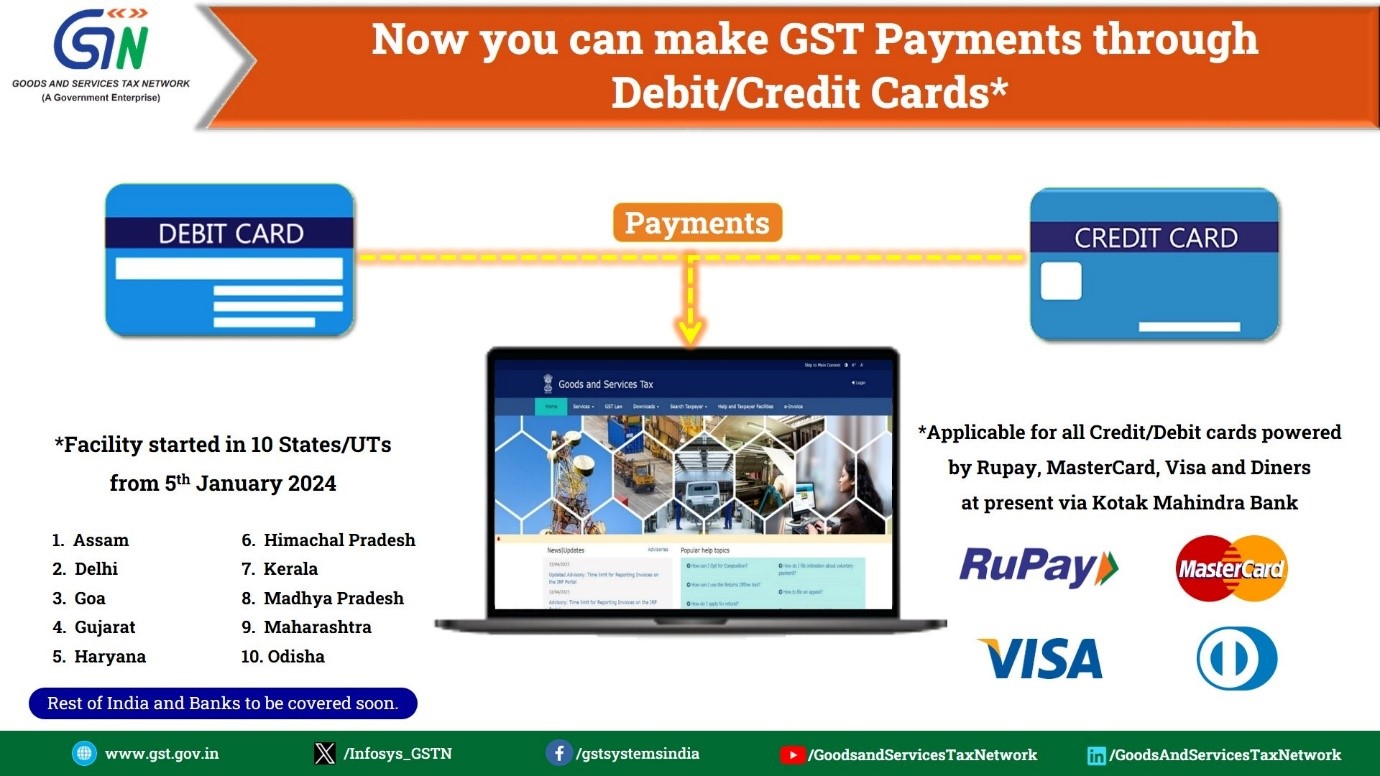 The GST Portal has recently issued an update that taxpayers can make GST payments through Credit Cards/Debit Cards* on the GST Portal.