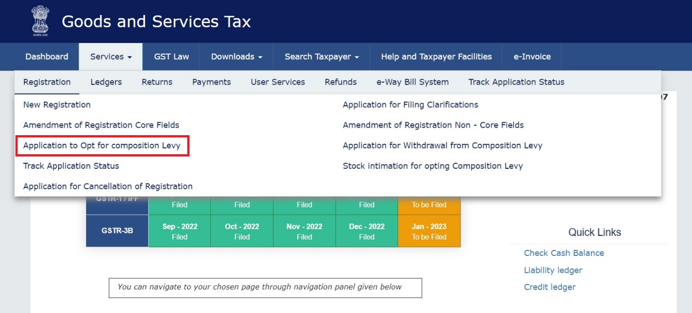 The Goods and Services Tax Network has enabled the functionality for regular taxpayers - "Application to opt for the Composition Levy" for Financial Year 2023-2024.