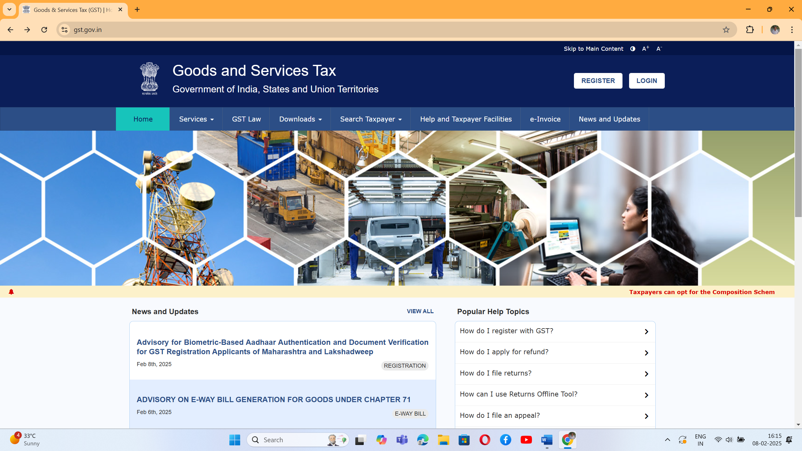 GSTN has issued an advisory dated Feb 8th, 2025 for Biometric-Based Aadhaar Authentication and Document Verification for GST Registration Applicants of Maharashtra and Lakshadweep.