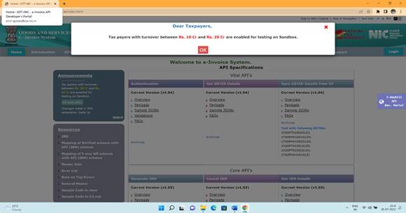 Recently, e-invoicing sandbox has been enabled for testing for taxpayers with turnover between Rs. 10 crore and Rs. 20 crore.