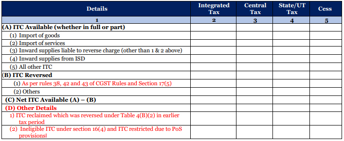 - The ITC not-available mentioned in GSTR-2B of the taxpayer has to be reported in 4(D)(2) of table 4.