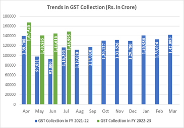 GST revenue collected in the month of July 2022