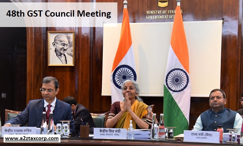 The 48th GST Council met under the Chairmanship of Union Minister for Finance & Corporate Affairs Smt. Nirmala Sitharaman via virtual mode in New Delhi today. The meeting was also attended by Union Minister of State for Finance Shri Pankaj Choudhary besides Finance Ministers of States & UTs (with legislature) and senior officers of the Ministry of Finance & States/ UTs.